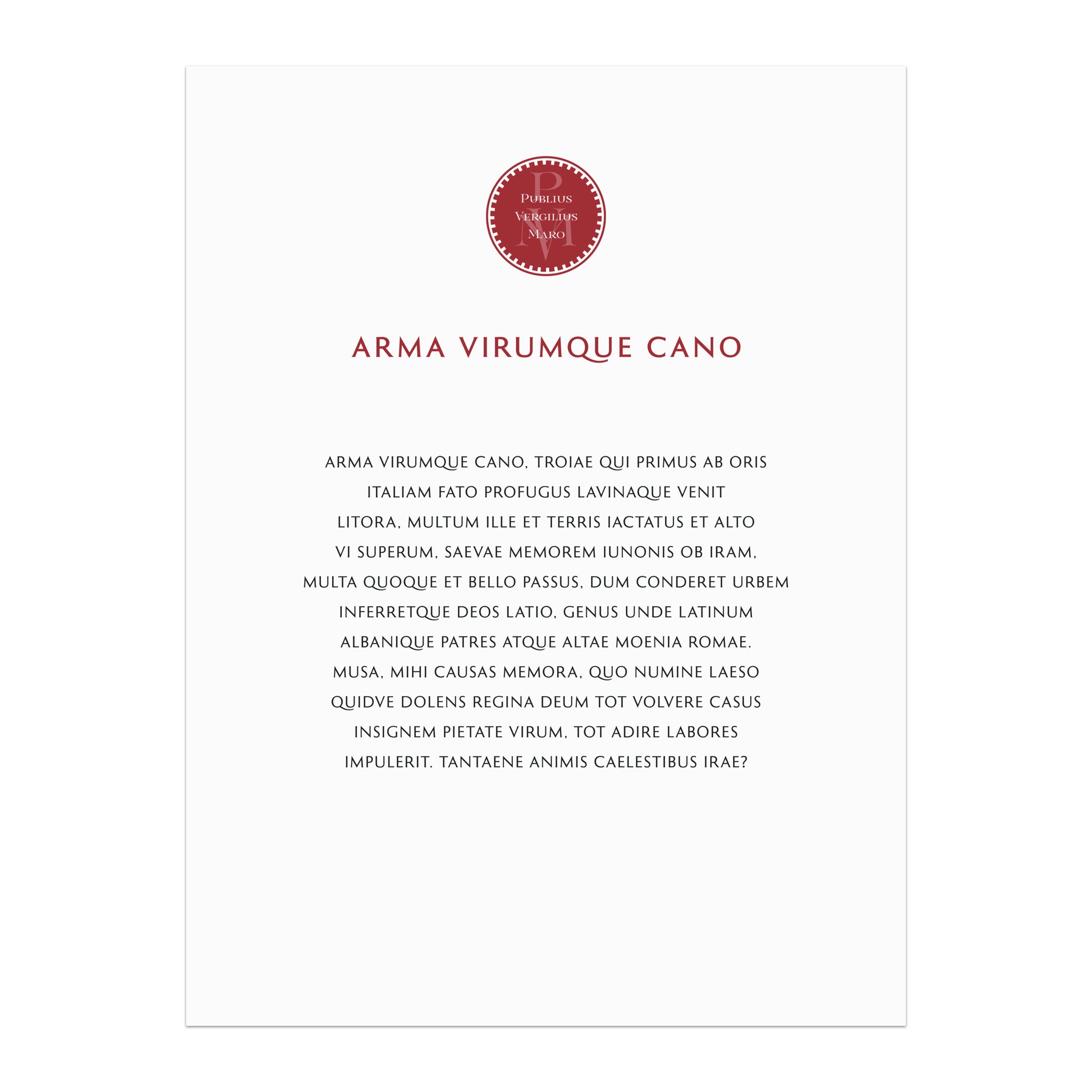 Virgil | Aeneid 1.1–11 | Arma virumque cano | Print